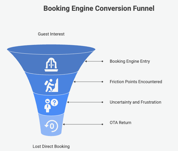 Each friction point compounds. Guests who were willing to book suddenly feel uncertainty and uncertainty pushes them straight back to OTAs, where the process is smooth, predictable, and familiar.